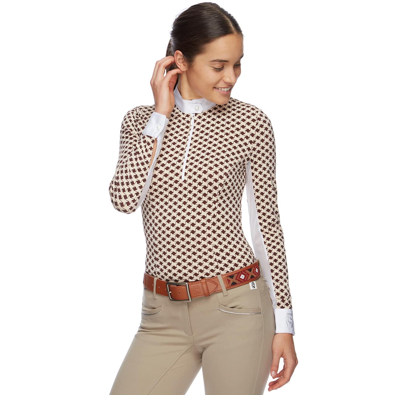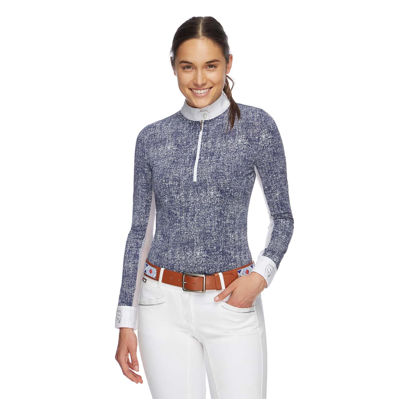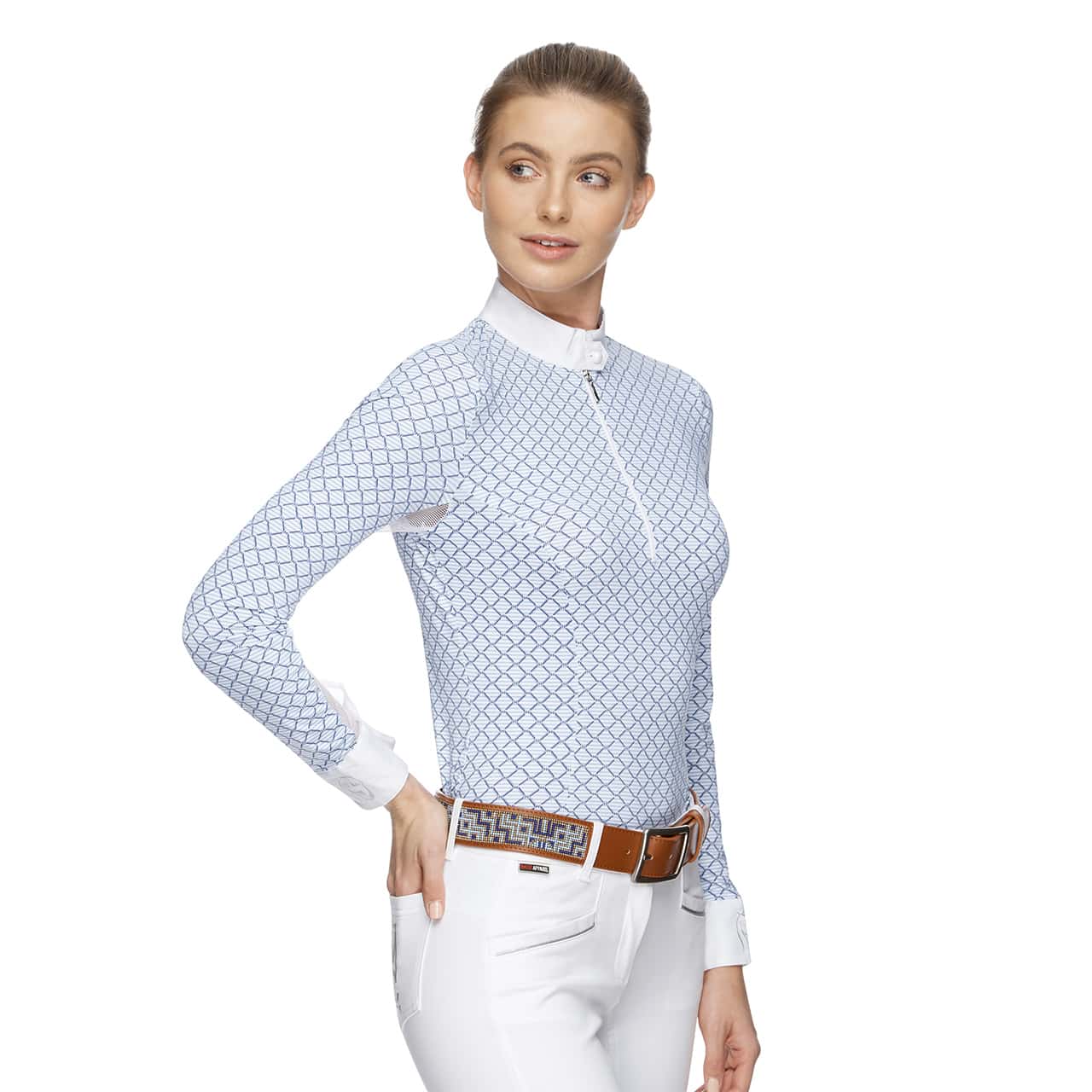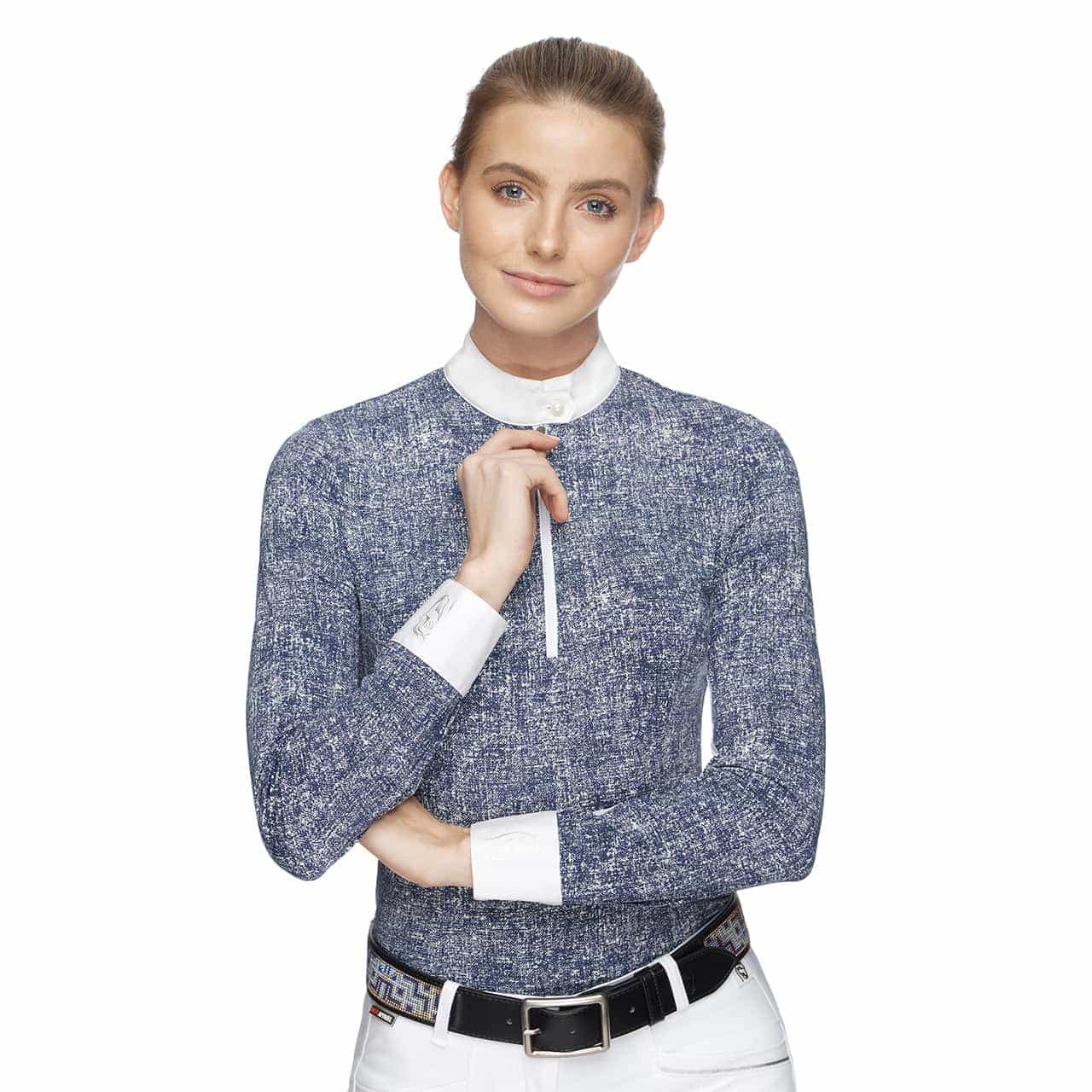 The Pizazz is one of our bestsellers! A super stylish riding shirt built for the competition ring with long sleeves and mesh panels running under the arm for ventilation. The Pizazz has a front zip and a button up collar, stunningly elegant, classic riding shirt made from a super soft sports fabric designed to provide maximum comfort in the arena.