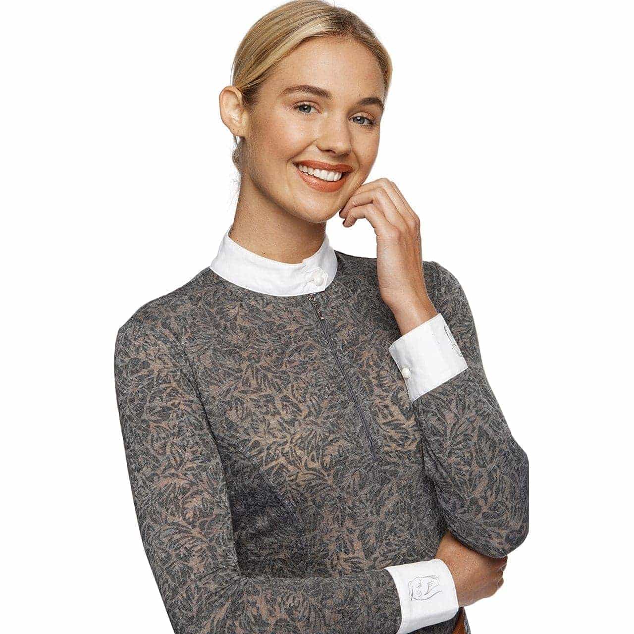 The Zigali is a lightweight shirt made from a soft stretch fabric. Its delicate pattern makes it one of the most unique shirts in the competition ring. With a front zip and button up pearl collar, this stylish shirt is perfect for summer competitions, and feels super comfortable under a competition jacket.